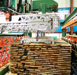 The stick scanning and rejection system ensures that all sticks meet the specific length, width, thickness, curvature and bow requirements you specify. Only acceptable sticks are placed upon the pack. This allows you to specify the quality of stick you wish to place and make adjustments based on the value of the lumber you are sticking.