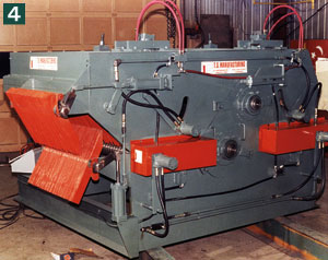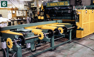 Подвергается стандартной процедуре рассверливания соосных отверстий и снятия напряжения. Просвет в 6 ½ дюйма, 2 плавающие пилы, приводные прижимные валки и приводной рольганг. Пневматический подъем прижимных валков для досок большего размера.