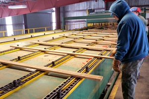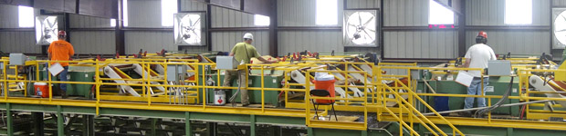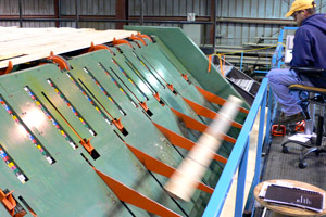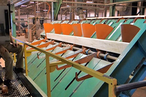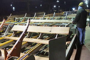 This system allows graders to continue to walk the chains with boards safely controlled by them, ensuring they don't become overwhelmed by the pace. These systems can also be installed with a cantilevered stool allowing the grader to operate from a seated position should they choose. This system is good for 17 to 20 boards per minute.