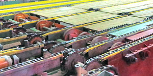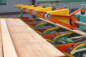 The Traditional Ducking Hook Lug Loader is a mainstay of many medium speed, Sawmill and Planer Mill Systems. This loader utilizes friction speed up wheels and accelerating chains to accelerate the board away from the accumulation behind it. The gap is detected by laser photocells that trigger the ducking hooks to raise up, hold the gap, and impede subsequent boards. This results in a successful lug loading.
